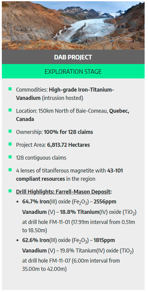 Based on a 2020 NI 43-101 Technical Report, the Temas Resources Corp. (CSE: TMAS) (OTC: TMASF) claims are “likely to contain significant iron, titanium and vanadium oxide mineralizations of igneous origin and of economic interest.”(7)