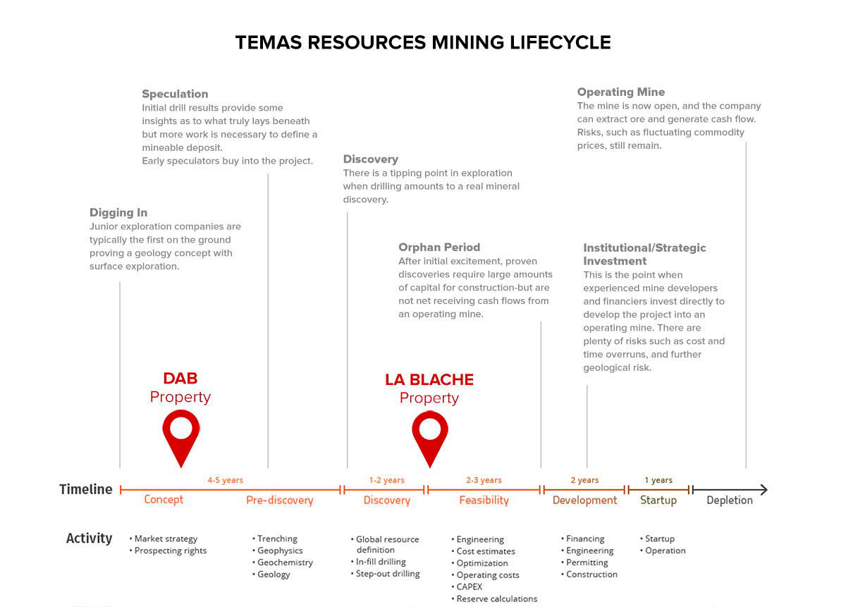 With mineral properties at two different points in the mining lifecycle, Temas Resources Corp. (CSE: TMAS) (OTC: TMASF) is diversified in its timelines as well as its resources.
