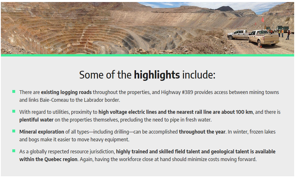 This is a region with a long history of mining, with many sites in various stages of development and production. The locations of the DAB and La Blache properties offer several advantages that leverage the mining-friendly province of Quebec. The surrounding area is uninhabited, with the nearest city being Baie-Comeau is about 150 km to the southeast, with railway service and a seaport to facilitate the transport of ore and other goods. Because the economic and industrial development in the region is largely based on natural resources, the infrastructure should represent significant savings for Temas Resources Corp. (CSE: TMAS) (OTC: TMASF) on overall costs when it comes to the development stage of its assets.